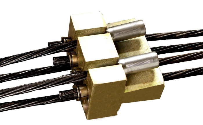 (固定端锚具)规格型号表示为:JYM15-N(YMP15-N)或JYM13-N(YMP13-N);适用于构件端部设计应力大或端部空间受到限制的 情况(Condition),它使用挤压机将挤压套压结在钢绞线上的 一种握裹式锚具,它预埋在混凝土内,按需要排布,混凝土凝固到设计强度(strength)后,在进行张拉。